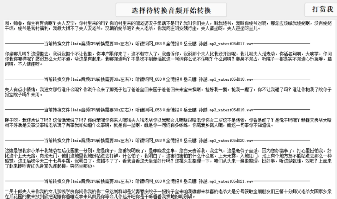 52上一个开发者基于百度Paddle Speech框架,进行重构代码打包而成音频转文字小工具离线版,非常强大,可以批量上传音频文件进行语音转文字而且语音识别正确率还不错,尽管比不上在线版的,但胜在可以完全免费用啊,这样就不用再到处去找音频转文字的软件,目前大多是需要付费的。开发者也说了,目前的版本仅支持CPU转换,所以如果CPU硬件比较差的话,速度会慢些,当然后续如果能结合GPU进行转换,功能将大大增强,期待后续的版本。