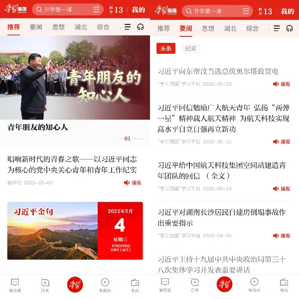 但与这些常见的短视频 APP 相比,学习强国更侧重于政治类,毕竟学习强国这个平台由中宣部发布,基本的宣传功能还是得有的。