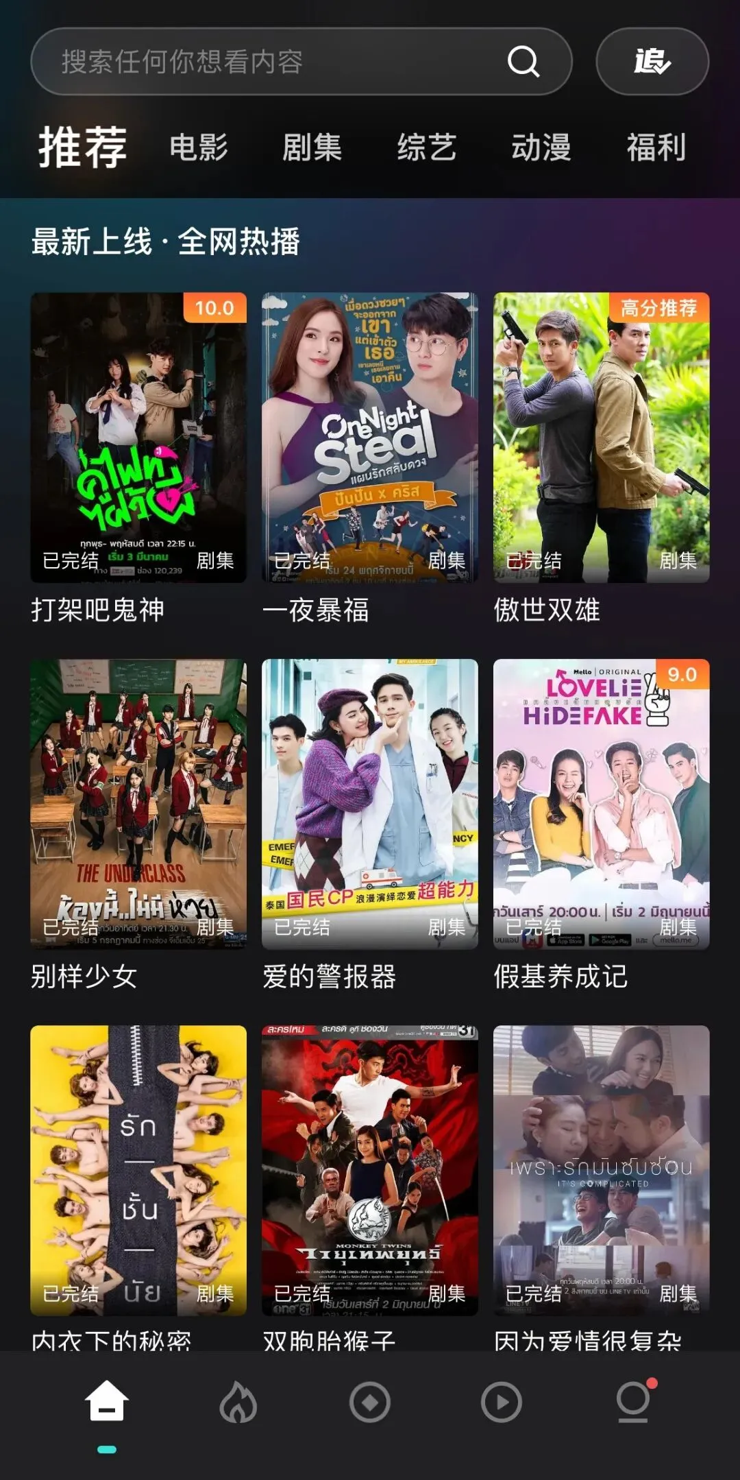 先说明下,这款软件会有广告卡片,但是播放是没有任何广告的,介意的小伙伴可以不考虑。软件页面十分简洁,涵盖了电影、电视剧、综艺、动漫等,,当然它还有一个福利板块,小伙伴懂的都懂。