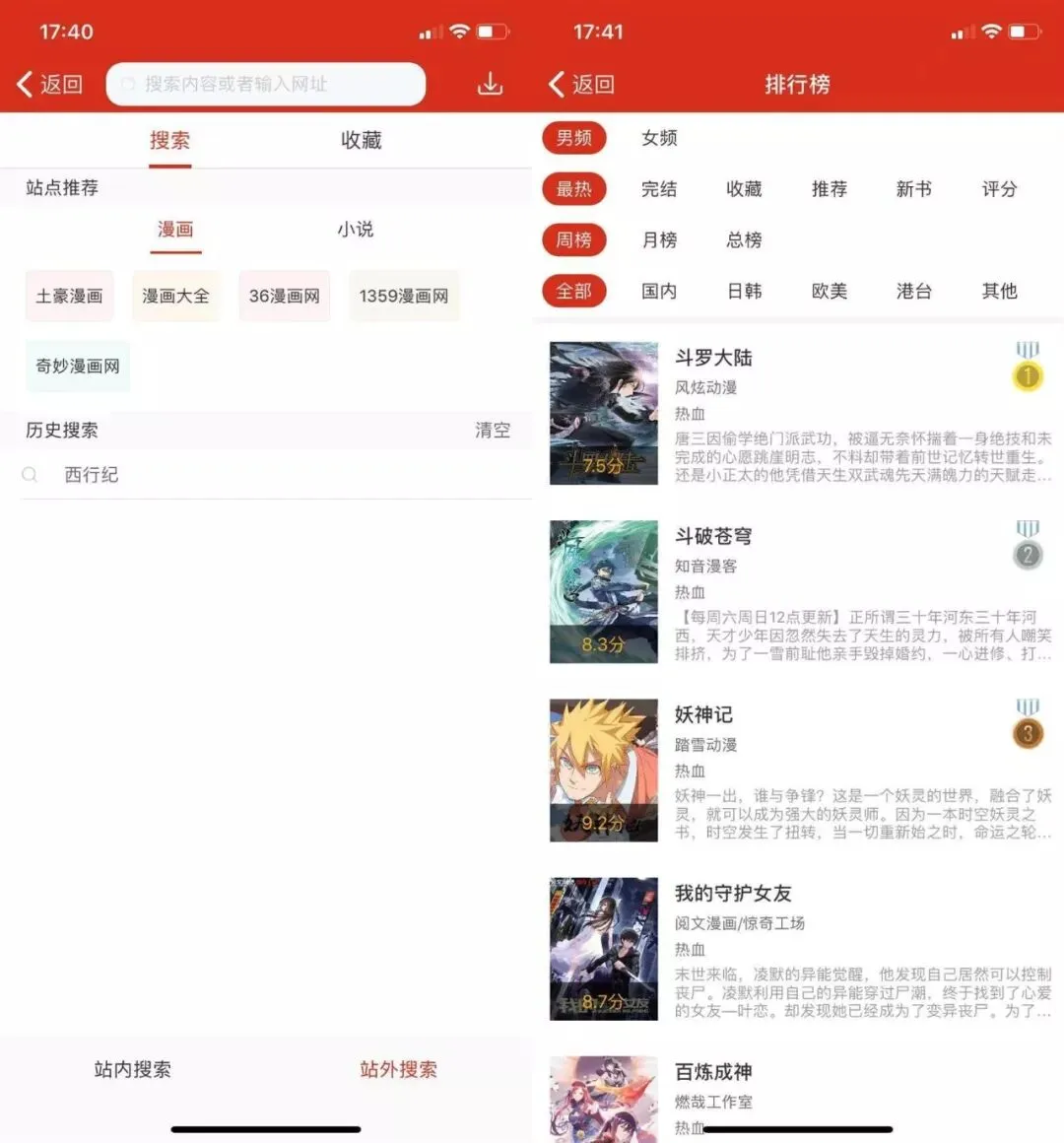 在这个软件找不到你喜欢的漫画或者小说?不用担心它还支持搜索站外的资源,可以说是非常给力了!不知道看什么漫画的,不妨可以从人气排行榜下手阅读~