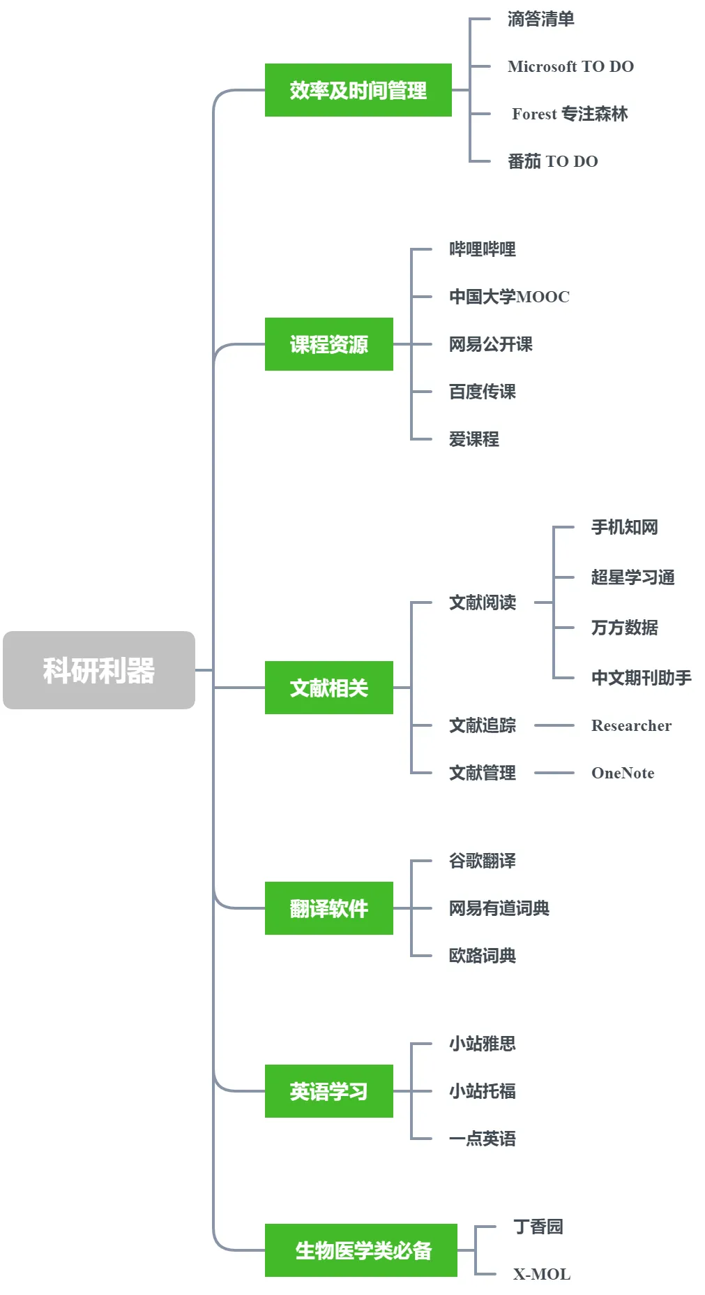 接下来,小编将从效率及时间管理、课程资源、文献相关软件、翻译软件、英语学习和生物医学必备等六个方面,为大家盘点科研道路上让您由入门到精通的各类手机 APP 应用,更好的武装您的手机,在完成日常科研任务的同时,以此提高「姿势」水平和战斗力,让您的科研生活如鱼得水、得心应手。