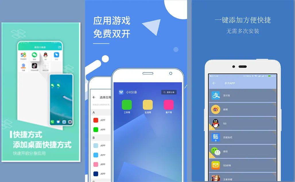 小X分身是一款安卓手机分身工具,支持双开应用、多开应用、多开微信、多开游戏等功能。它采用安卓虚拟化技术(混沌虚拟引擎),允许用户同时使用多个账号,解决了多账号使用的问题。