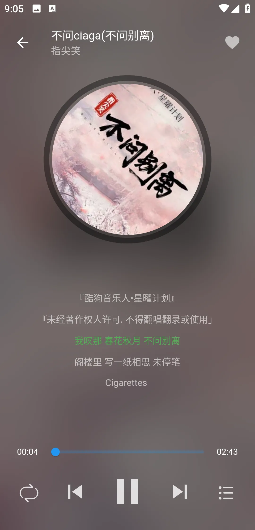 播放非常流畅不会卡顿,不过就是该软件暂时不支持音乐的下载,无法离线播放。
