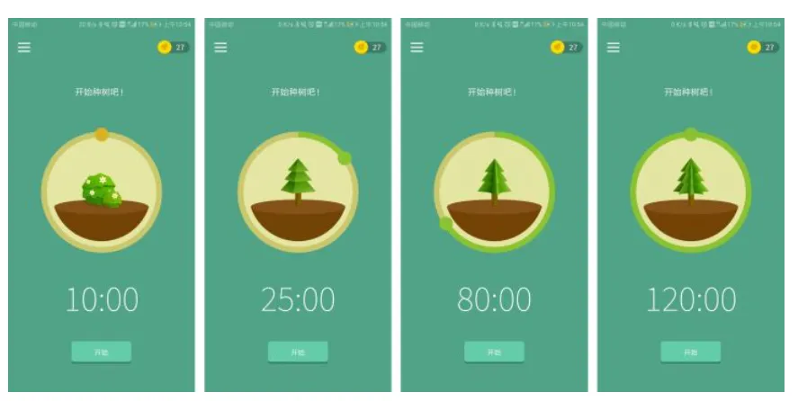 首先,树的形状根据时间长短有所不同(也有一些树和花不会变化),比如可能25分钟只是一个只有树叶的数,1小时上面就会结个果,2小时就结更多的果这样——