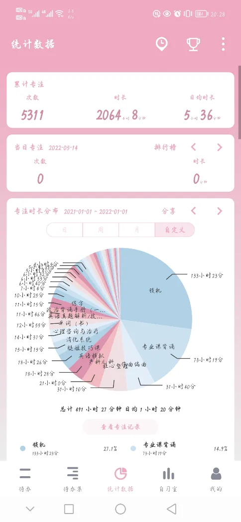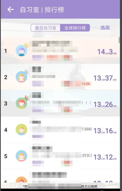 要知道每个人的作息模式不一样、用app的方式也不一样(有些人可能就是用来锁机的),而且他们学习过程中的效率也不一样,所以我倒是觉得没必要那么在意时间的比较,自习室的存在应该是用来相互督促,形成一种良性竞争的,如果真的因为和别人比较会过于焦虑的小伙伴,那可能这个功能并不适合你哈哈,你可以选择不加入自习室或者把自习室的界面在设置里面关掉。