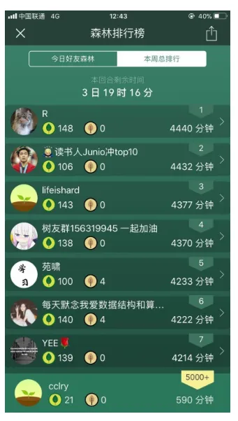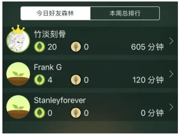 Forest的社交功能就比较友好了,它可以加好友,虽然进入好友主页也能看到好友时长,但是他们的社交互动主要是在于【多人种树】的功能,大家一起共用一个番茄钟,如果在番茄钟的过程中有人退出了就会导致树木枯死,另外forest中的各种树都是需要通过一定时长的使用所赠送的金币去购买的,如果多人种树即便自己没有那种树,房主也能共享。