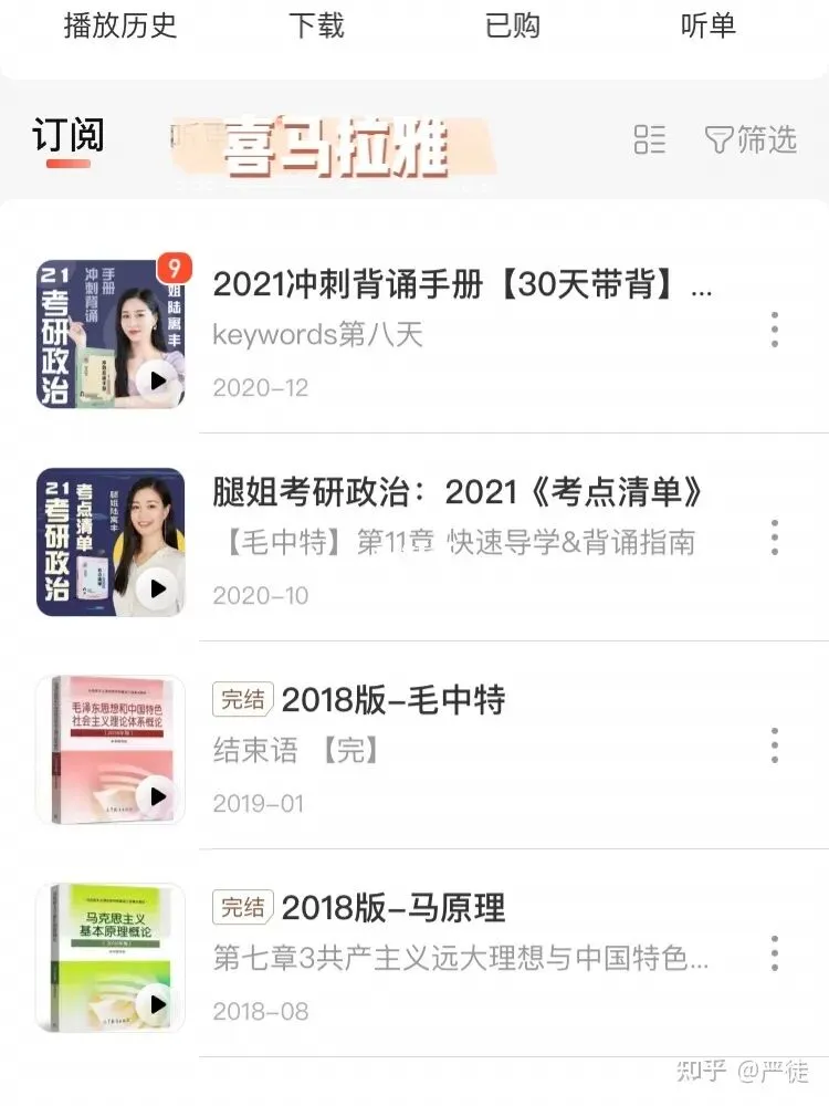 我个人是在后期背诵政治答题的时候,在碎片时间反复听腿姐政治的带背内容(我跟的是腿姐,像徐涛或者其他政治老师的资料在喜马拉雅也会有带背),形成对这些大题知识点的逻辑体系。