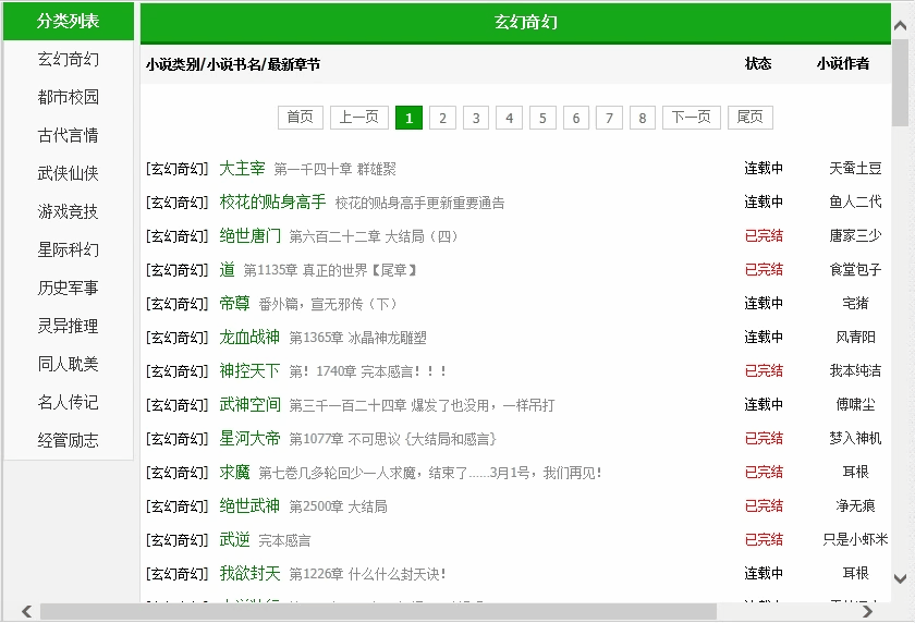 分类列表:包含有玄幻武侠、都市言情、名人传记等。