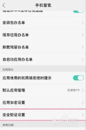 接着在手机管家界面打开”安全验证设置“进入,如下图所示: