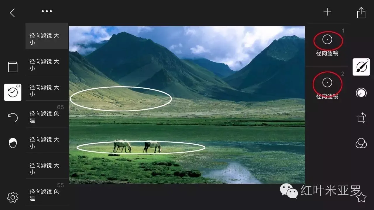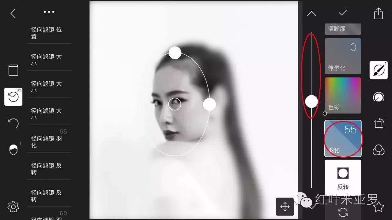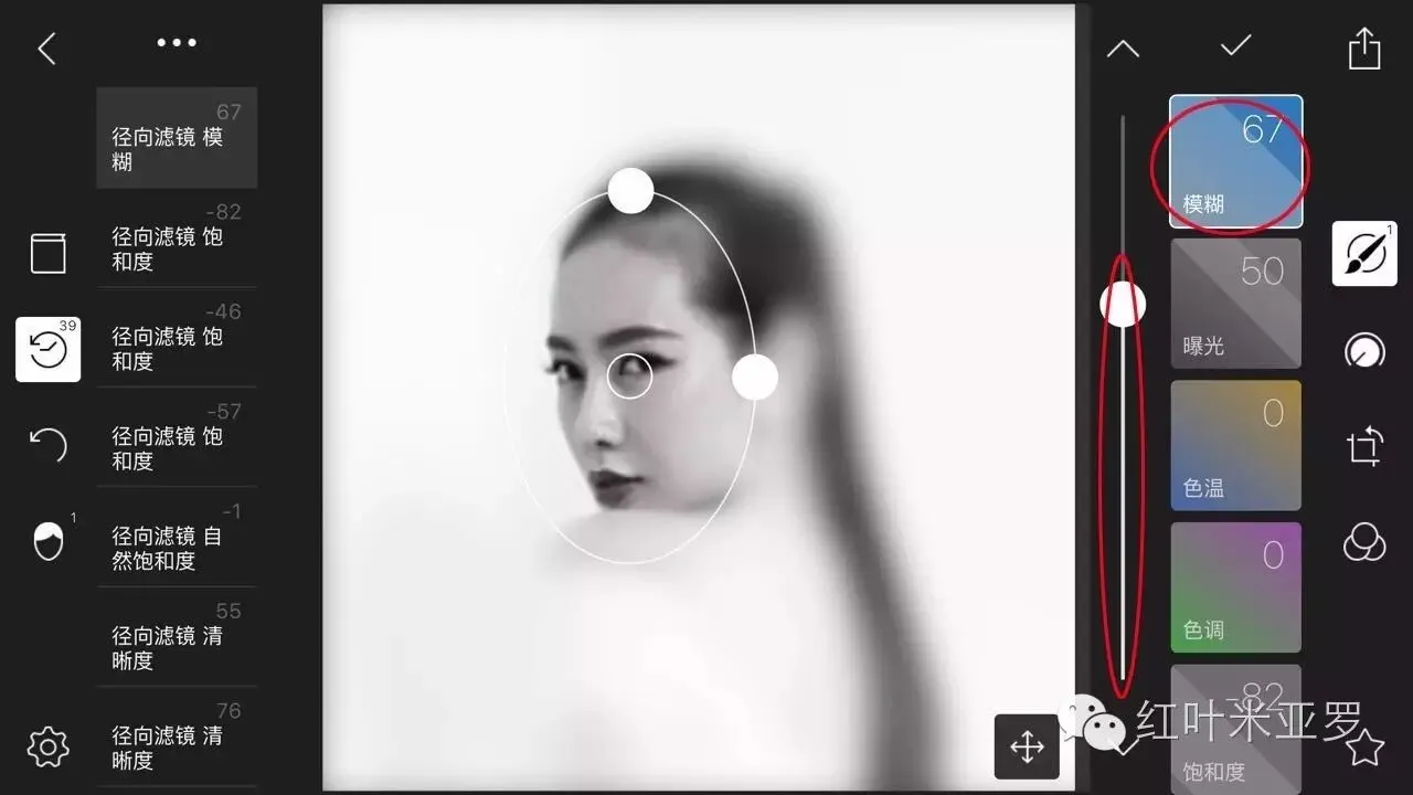 选择径向滤镜,模糊工具,拉动游标加大虚化