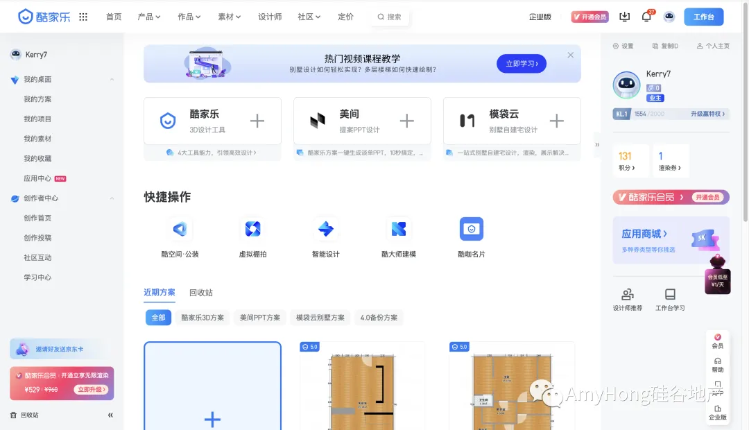 酷家乐,这是一款让普通人也能轻松DIY设计自己的家,并且免费生成装修效果图的平台。