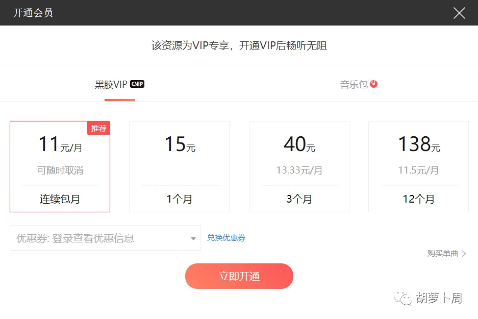 说完了视频,再说说音乐,萝卜哥最喜欢使用网易云音乐,但是萝卜哥从不购买音乐会员。