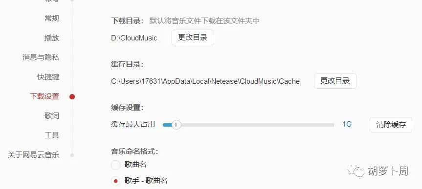 通过设置,我们找到歌曲默认缓存路径为: