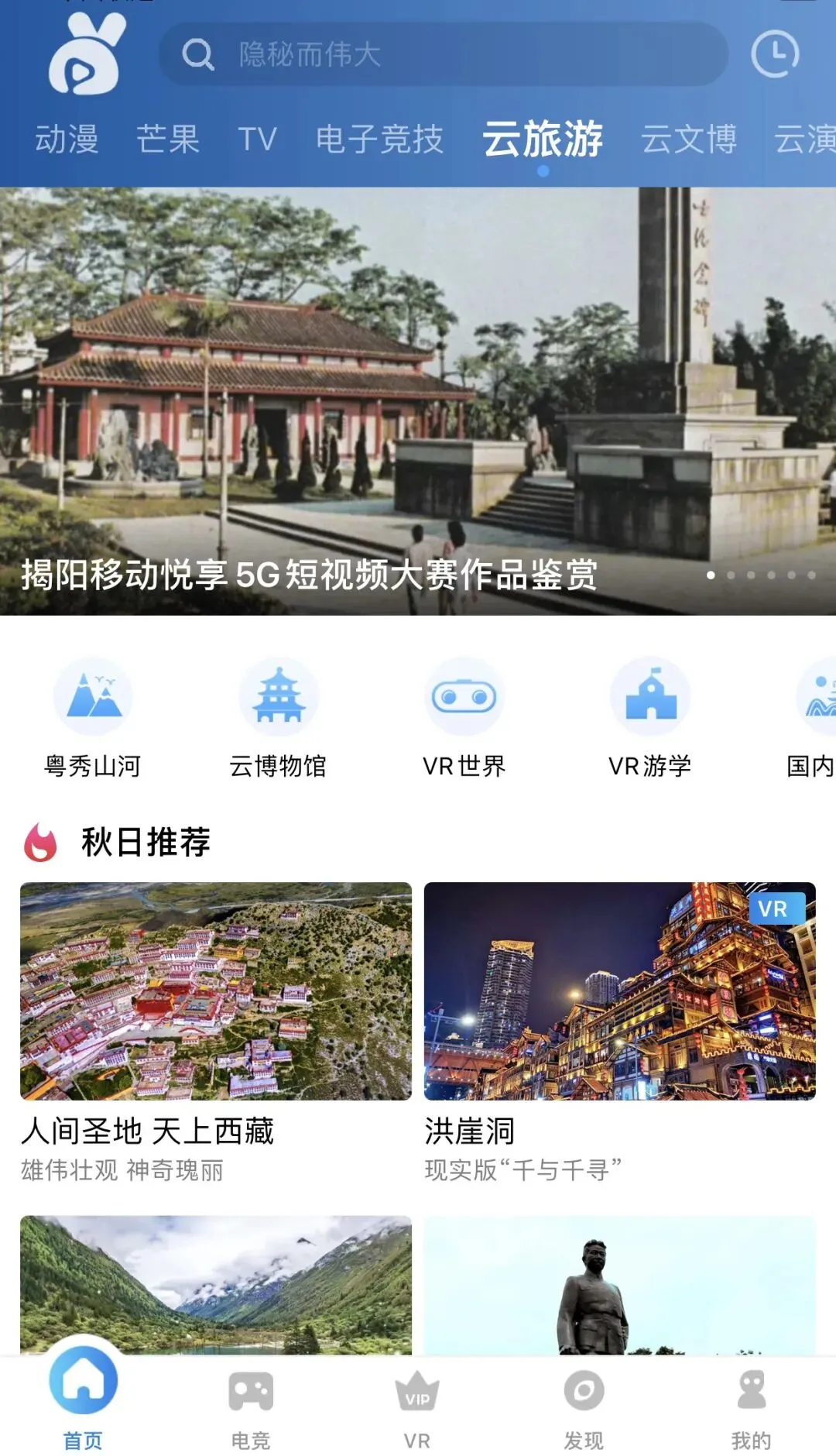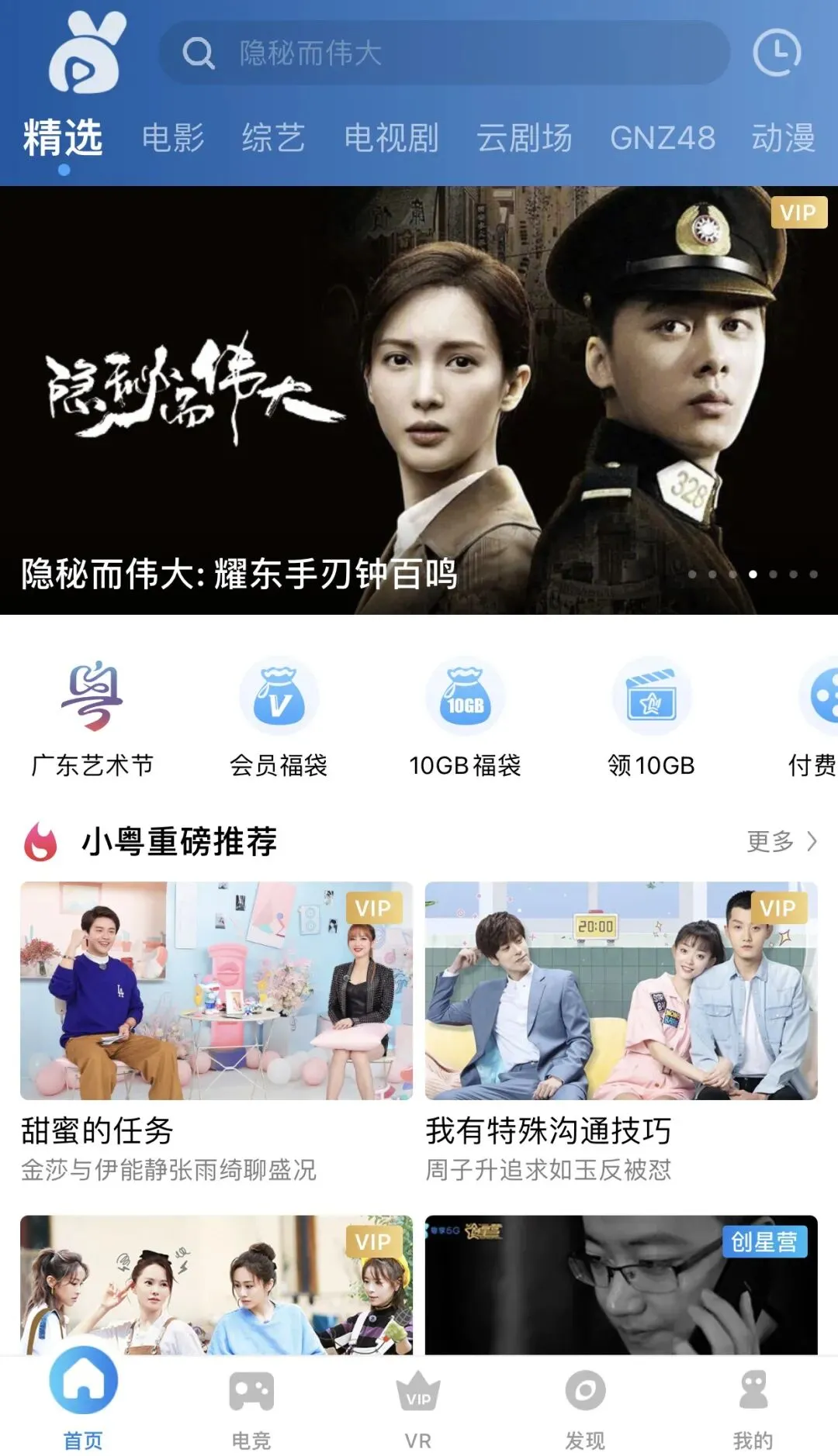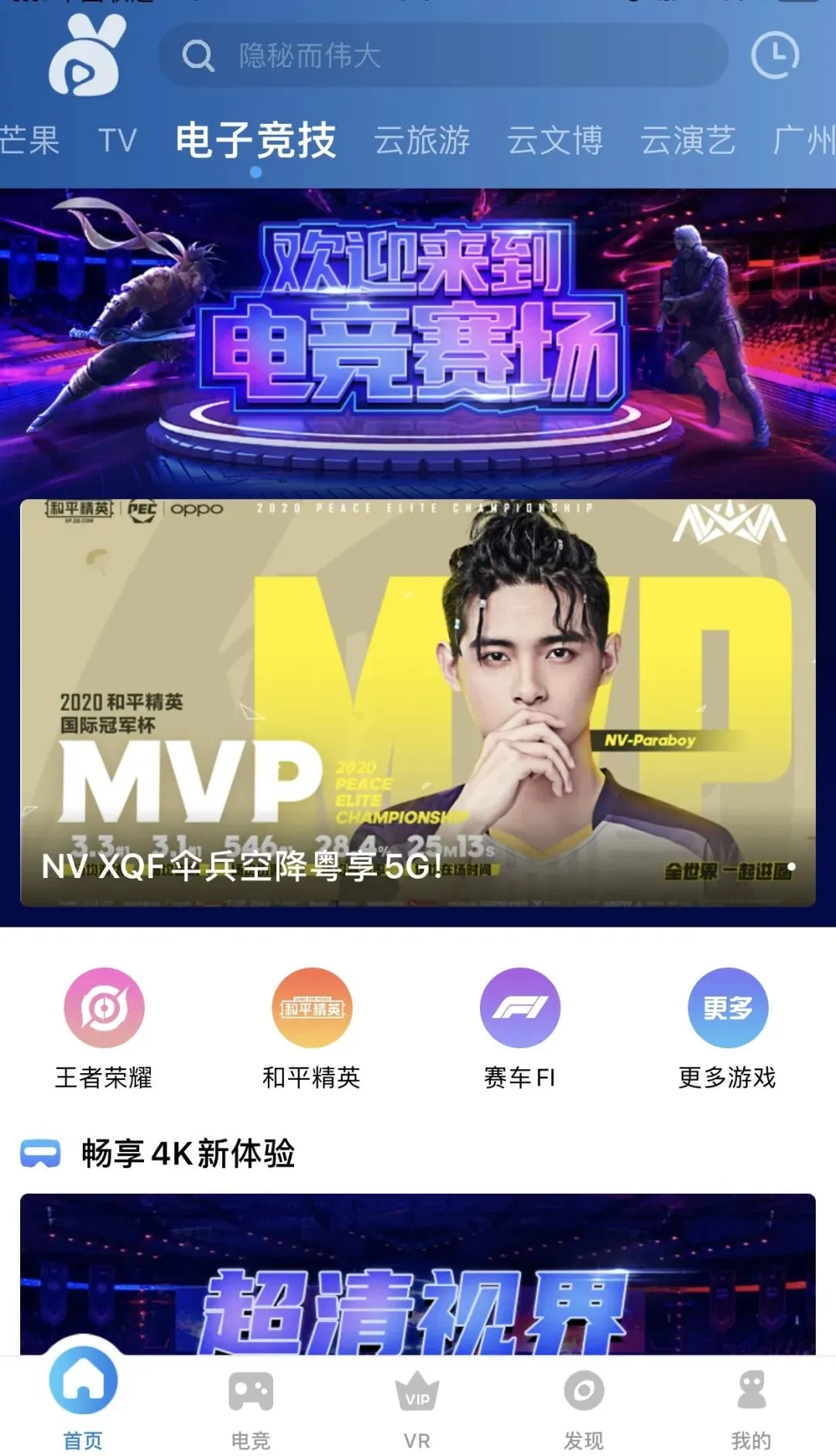 广东靓仔靓女、男女老少都在用的宝藏APP——“粤享5G”,一个集高清电影剧集综艺视频、游戏电竞、VR播放、本地特色、5G业务办理等为一体的综合互动视频平台。