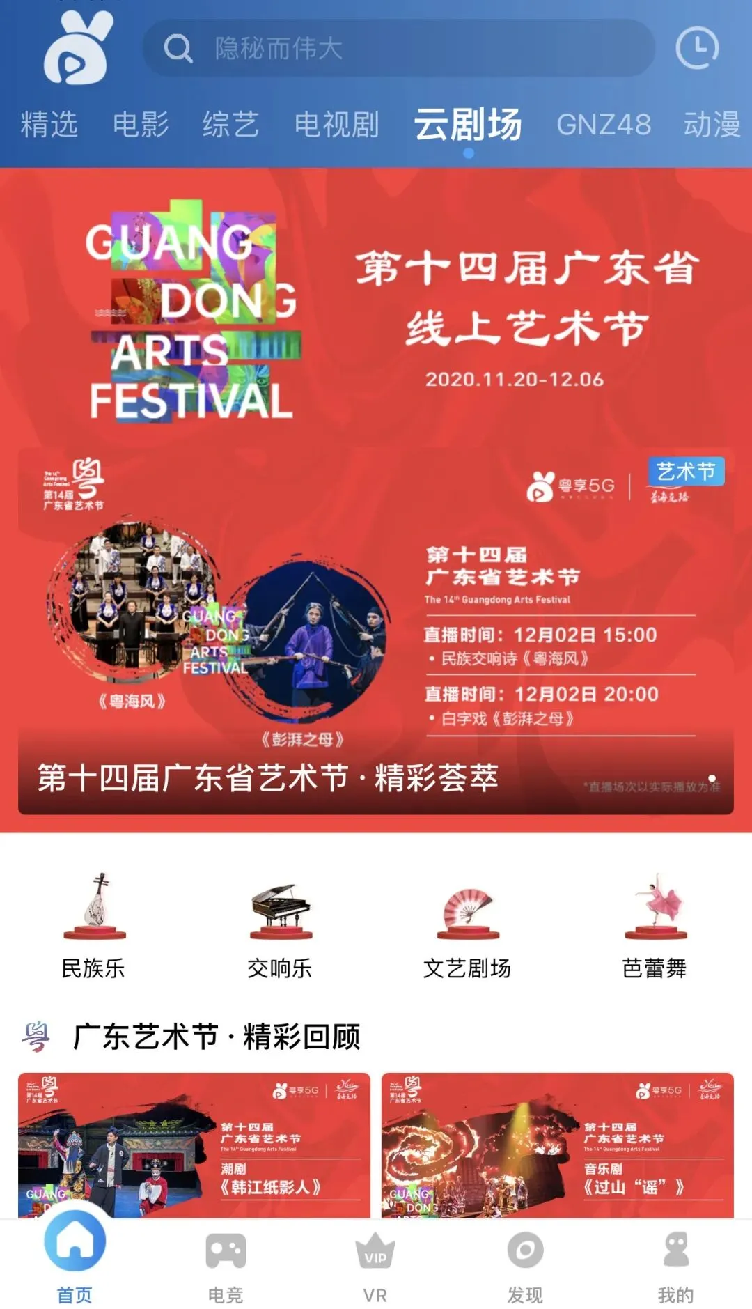 “第十四届广东省艺术节”APP内同步直播