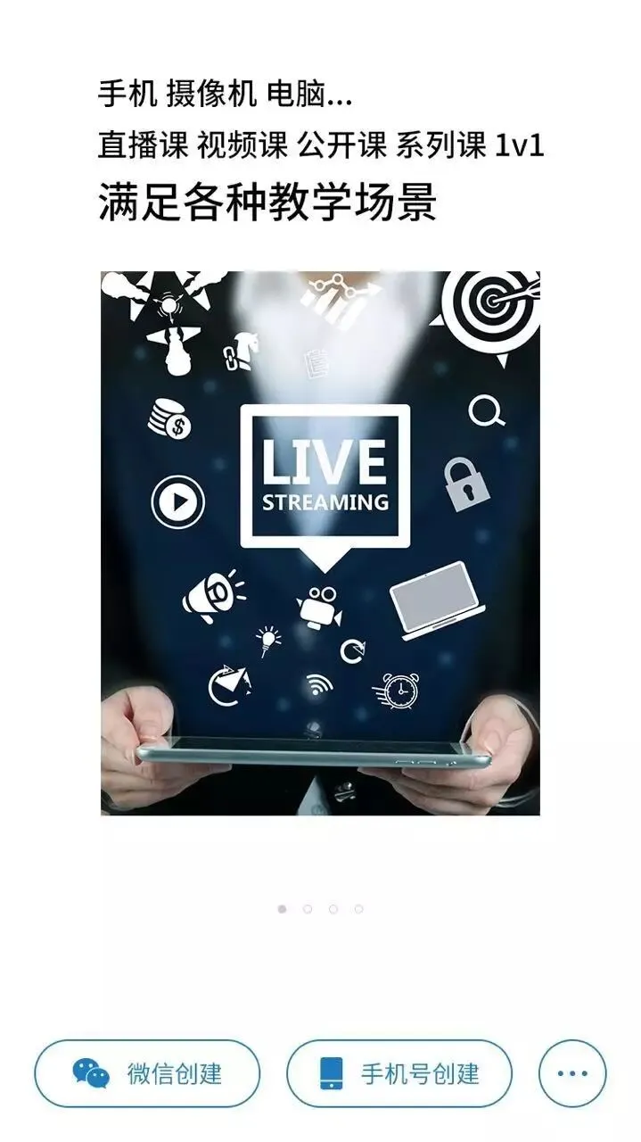 • 史上最强大的直播工具,除了支持手机直播外,我们还支持电脑摄像头、摄像机、话筒、声卡等各种专业音视频设备做直播,观众手机收看画面音质极其出众,满足手机移动直播、高清摄像设备直播、PPT(图片)+语音直播、捕捉电脑屏幕录屏直播、视频文件直播等各种直播场景需求
