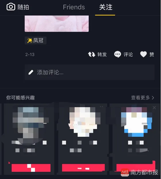 抖音的“关注”一栏,会向用户推荐“你可能感兴趣”的人。