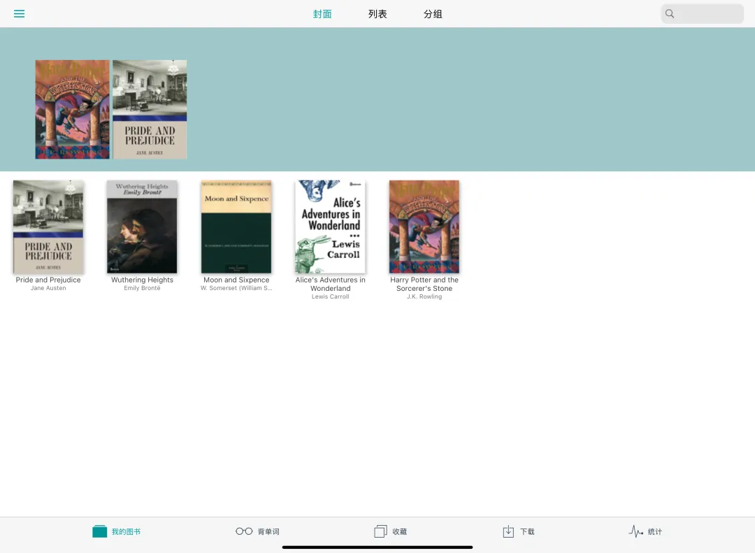 首先,《蒙哥阅读器》支持自行导入 epub/mobi/pdf/txt/doc 格式的英文原著和词典,还可以从自带的 feedbooks 和 Gutenberg 图书下载源下载免费的英文原版图书,解决了英文原著来源的问题。