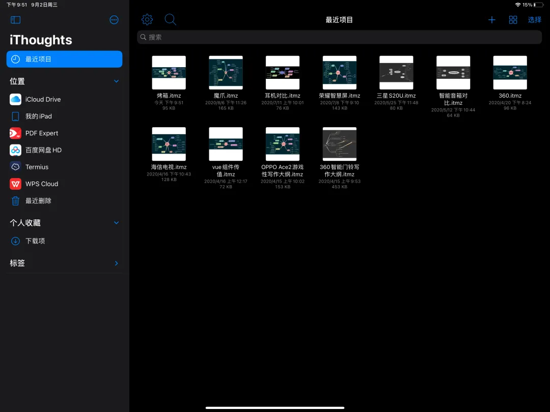 《iThought》是我在iPad上用过最简单、好用的思维导图软件。有免费版本可以试用。它支持直接在你的iPad或者云盘上新建或者打开文件,除此之外没有什么花里胡哨的功能,非常简洁。