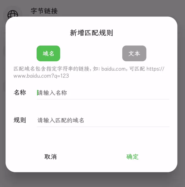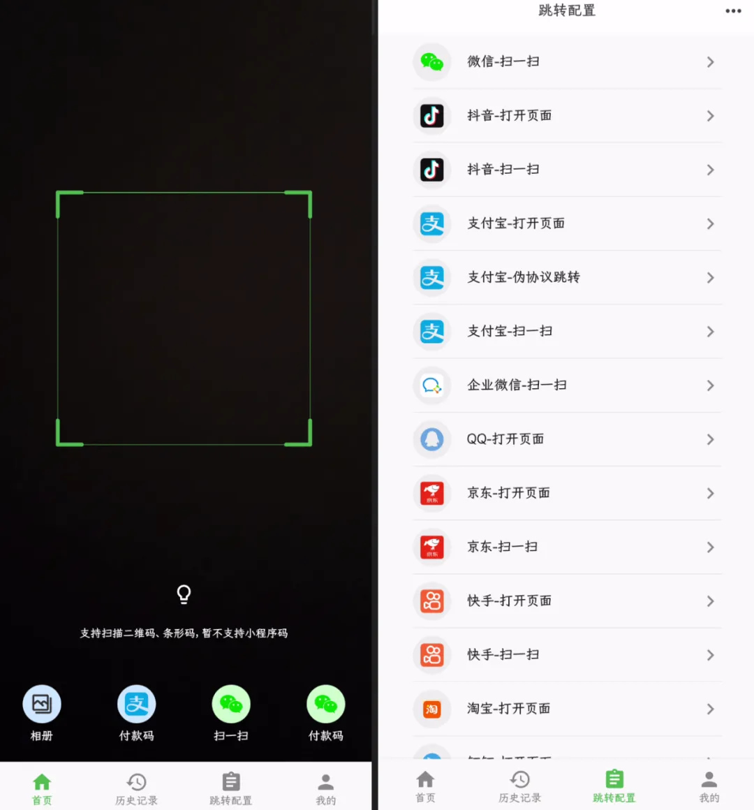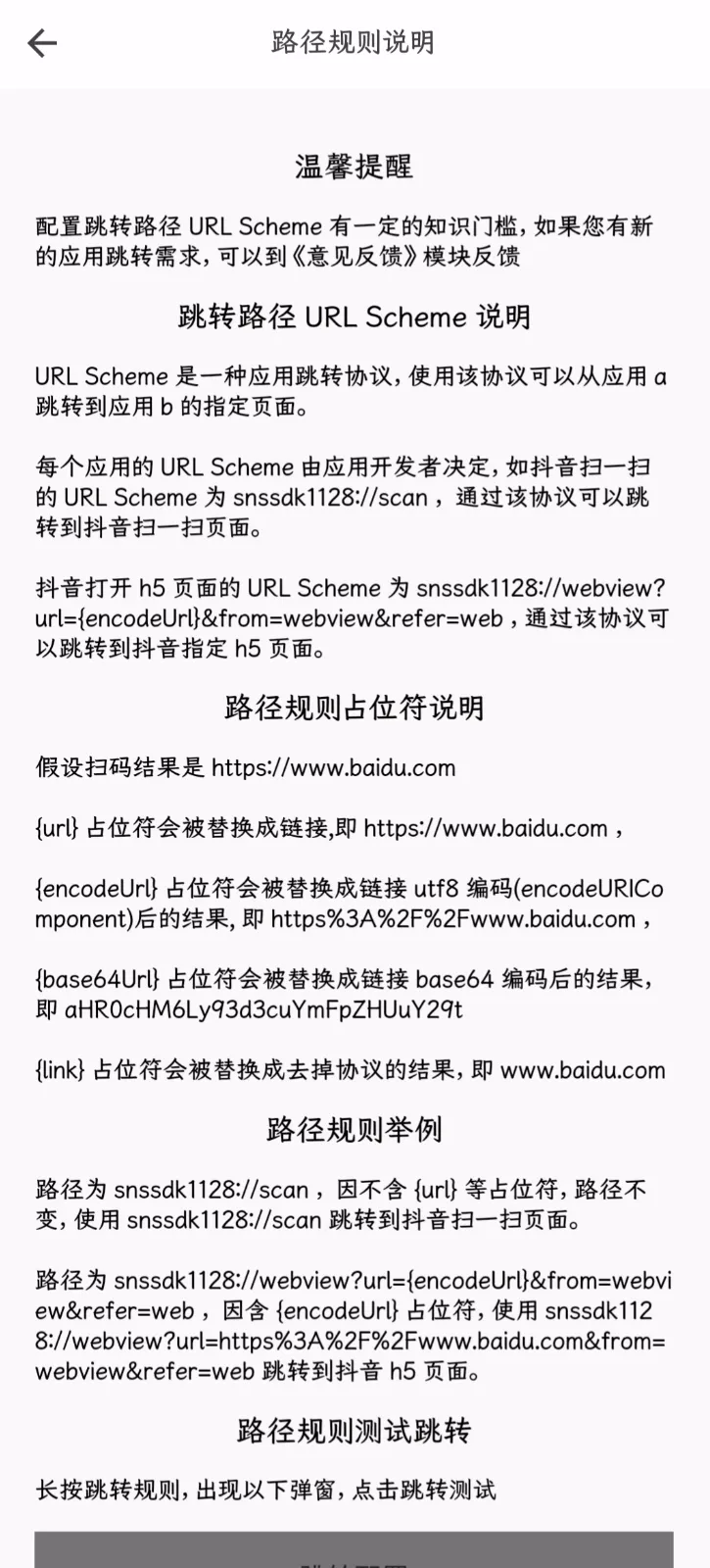 如果只是扫码后软件自己跳转,那么这还是一个比较简单的软件,可玩性不是那么高,在最近的更新中,软件加入了自定义规则的功能,可以根据二维码内容来实现不同的跳转。