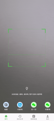 听上去还不错的样子,打开软件之后,可以看到除了软件自己的主要功能外,也有快速跳转到微信扫一扫和支付宝和微信付款码的按钮,这样一来,就可以省去思考去哪里扫码的纠结,在这个界面都能跳转。