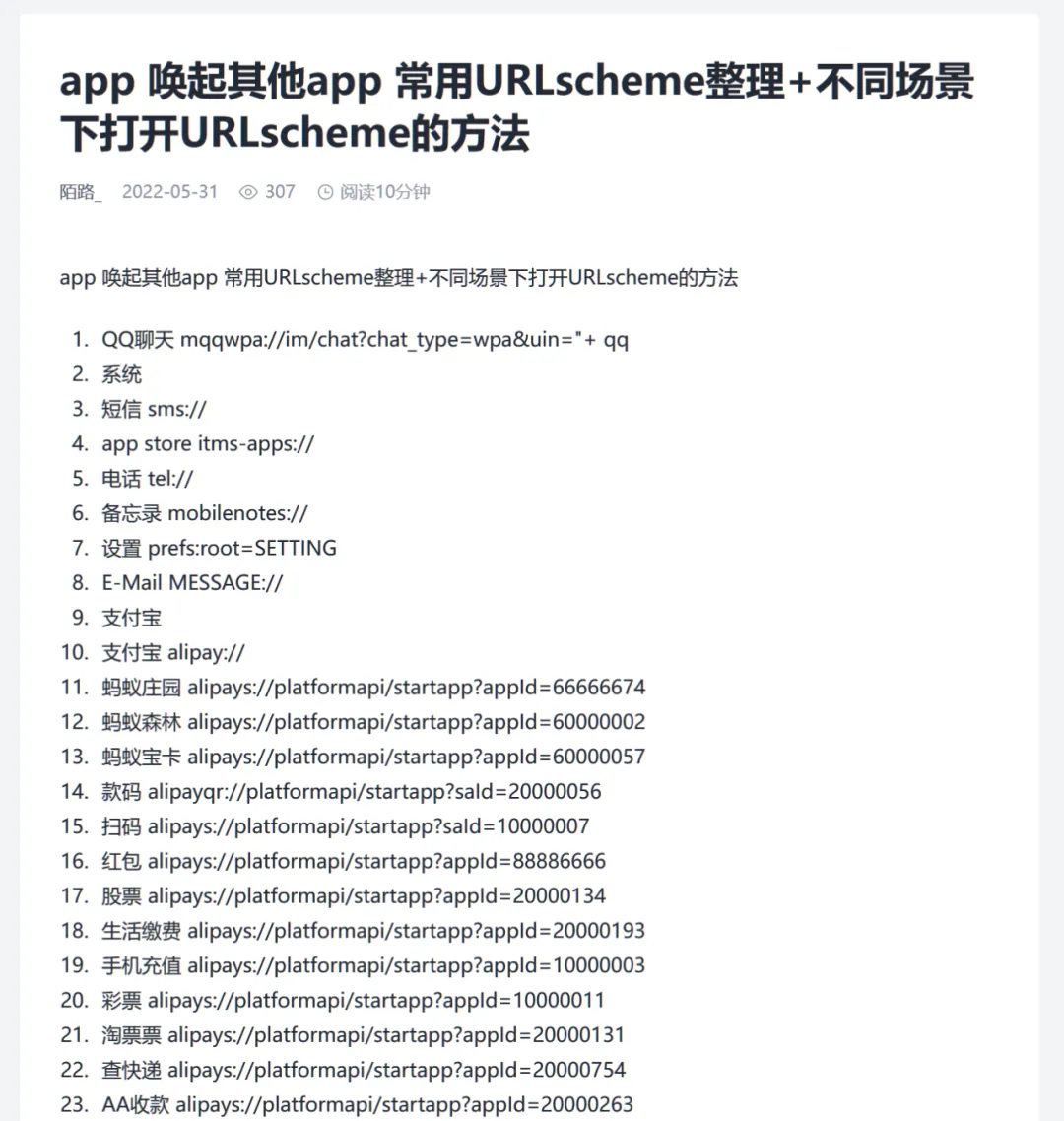 使用这个功能,需要自己找到APP支持的跳转前缀,这些可以在网上找到一些。