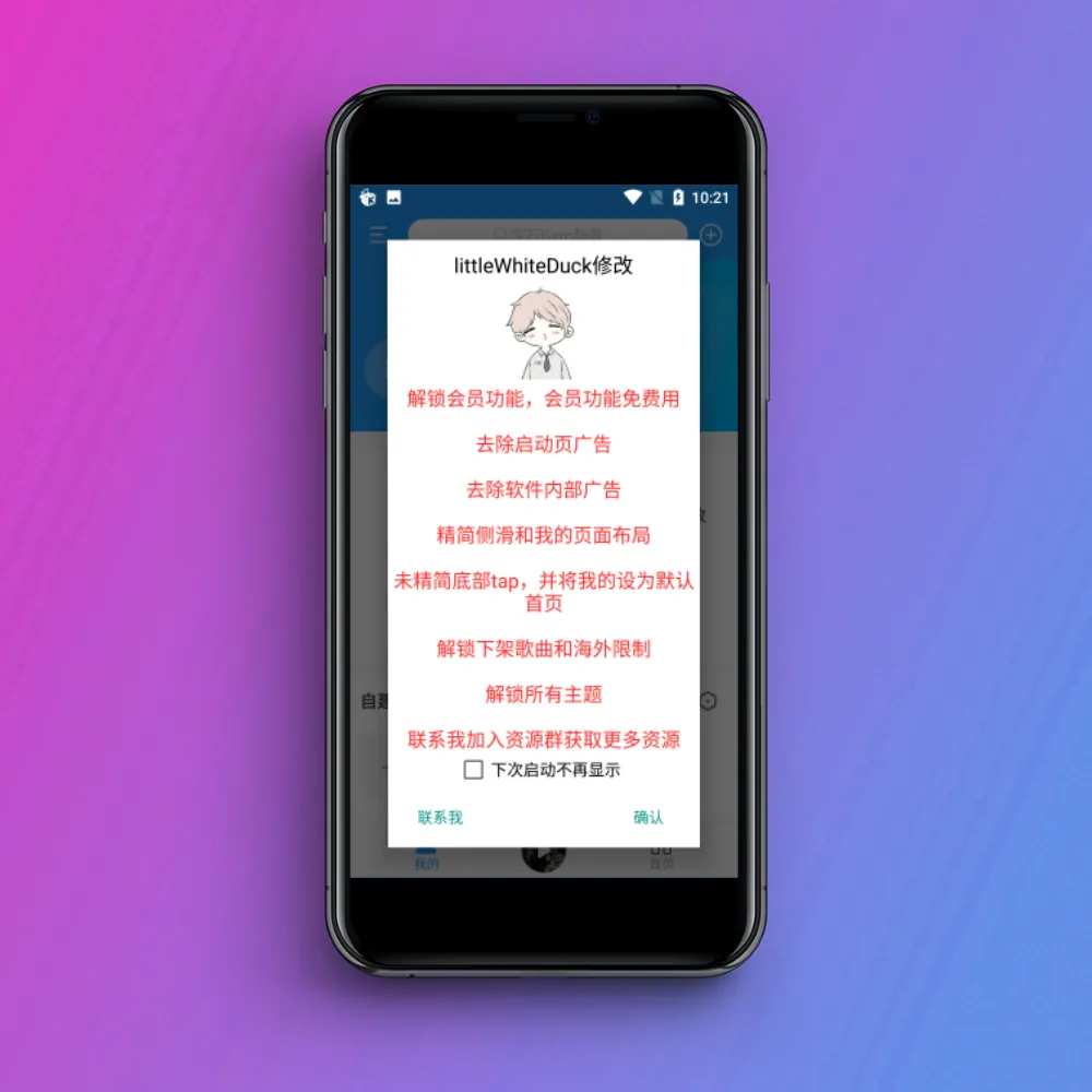 这个软件呢是酷W音乐的破解版。解锁会员功能,会员功能免费用、去除启动页广告、去除软件内部广告。