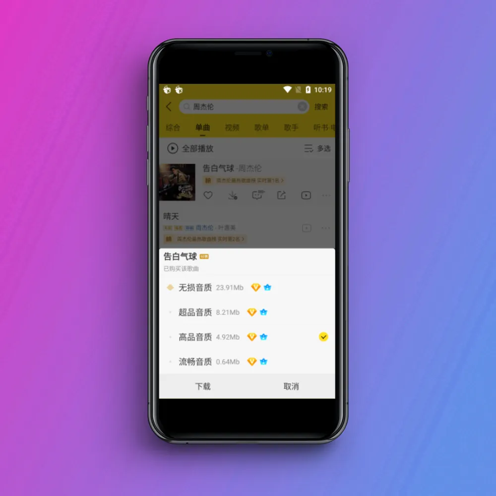就拿我最喜欢的杰伦哥的告白气球来说,不光能听,而且随便下载。高清音质,蝰蛇音效,简直美滋滋。
