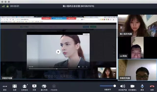 钉钉视频会议的演讲视图、宫格视图和列表模式三种视图