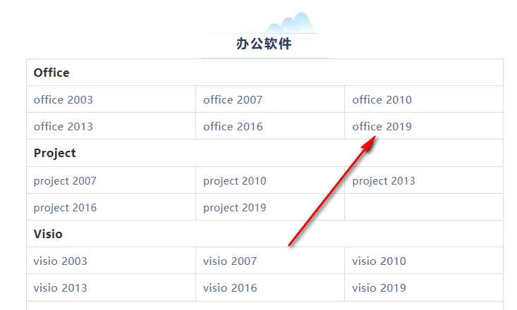 1.首先打开软件目录,需要下载的软件,例如office2019,点击office 2019