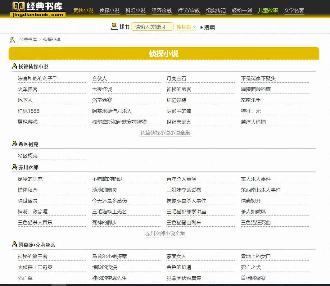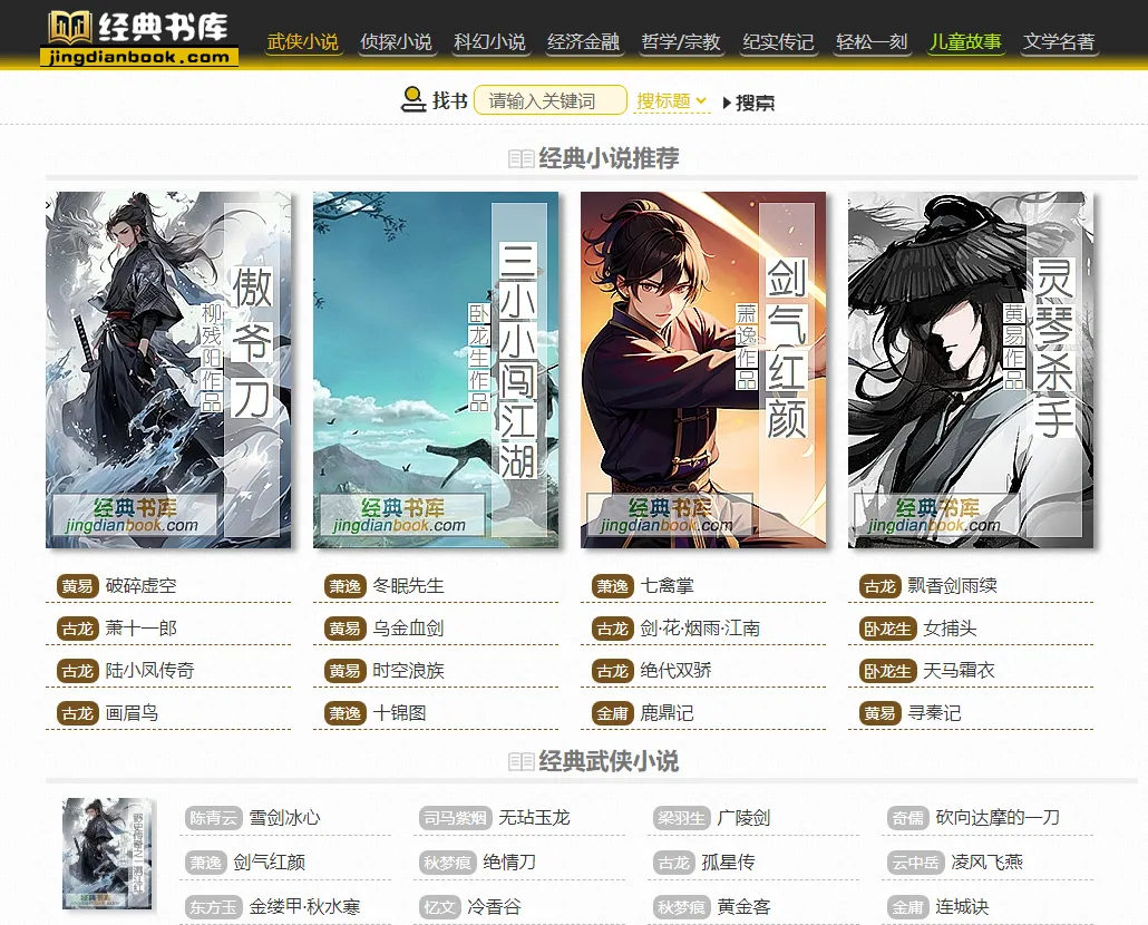 经典书库是一个集 武侠小说、侦探小说、科幻小说、经济金融、哲学传记、儿童故事、文学名著 等于一体的在线阅读平台,所有书籍均可 免费阅读,无需注册或下载,打开即可畅享文字的世界。