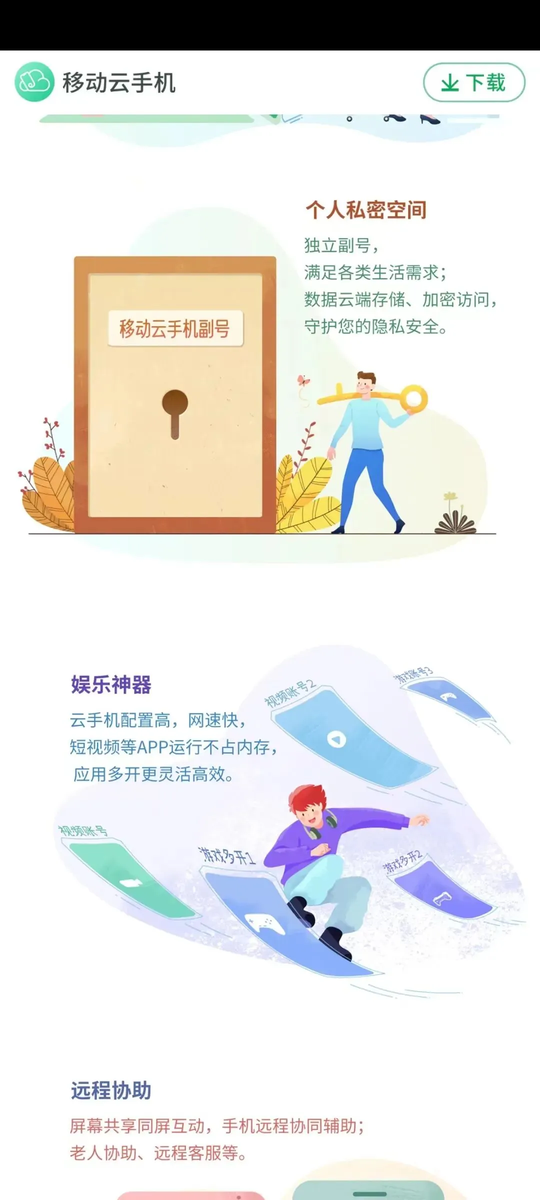 这是中国移动推出的云手机软件,只需安装一个APP,就相当于拥有了一部新手机。