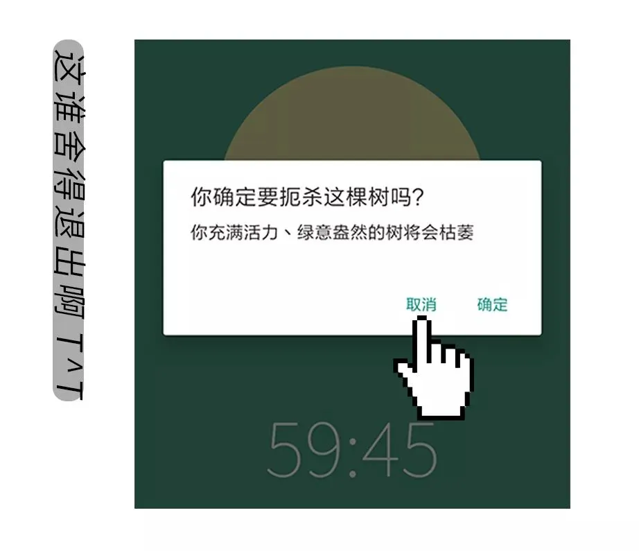设置好时间、种下一棵树后,就可以把手机搁一边了,等时间到了就可以收获一颗可爱的树,要是时间不到就用手机里其他软件的话,树就会枯萎。