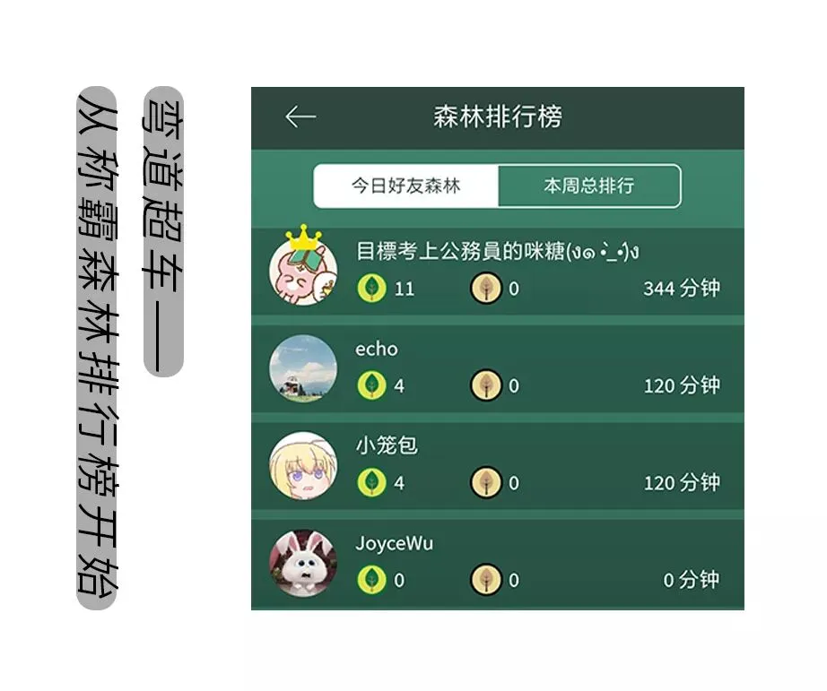 这个APP还有森林排行榜!在 Forest 加到学霸的好友,就可以看到他每天学习多长时间了!快和学霸们开启一场你追我赶的学习竞赛!