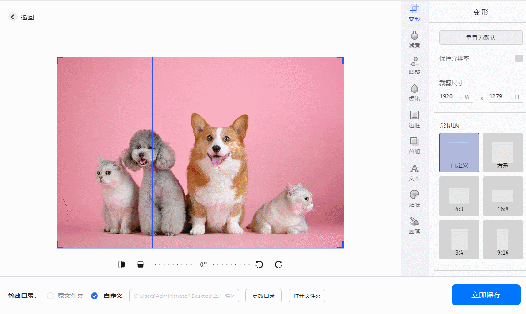 我们在【综合编辑】可以“一站式”搞定图片滤镜、文字、裁剪、色调、虚化、边框以及图片涂鸦等多个操作,只需要简单导入图片就可以轻松操作。