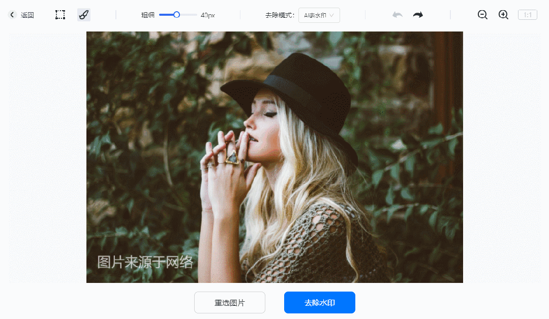 从网上保存了带有水印的照片也能使用它来去除,基本上不会给照片留下什么痕迹,并且也不会影响清晰度。