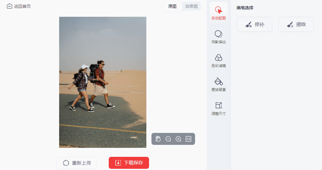 先说说它的抠图功能,它的抠图功能分为人像抠图以及物品抠图,并且还可以一次性导入多张图片进行抠图的操作,只需要将照片导入就能将照片的主体抠出来,更换一个其他的背景之后看着效果也比较不错~