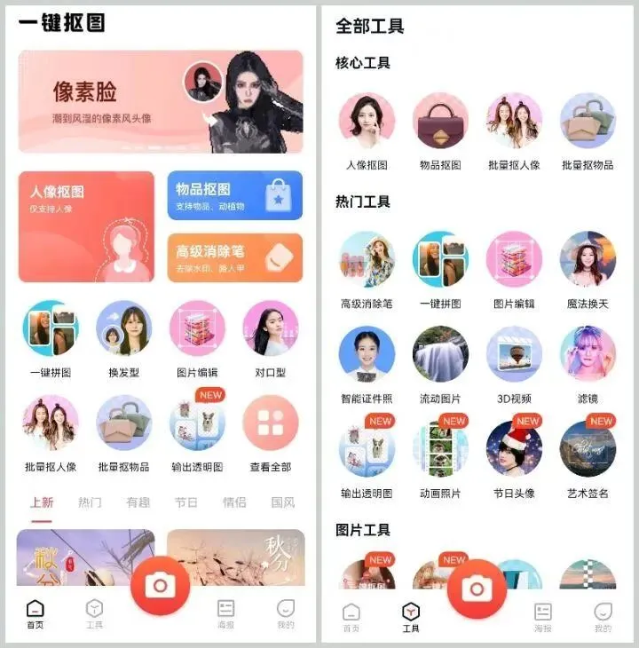 为抠图而生的一款多功能修图工具,除了抠图以外还支持证件照制作、人脸修复以及照片修复、照片上色等多个功能,使用起来同样属于新手友好类型的。