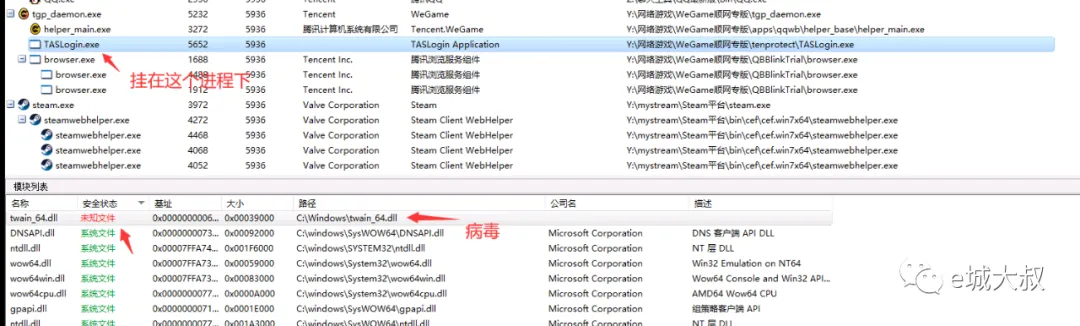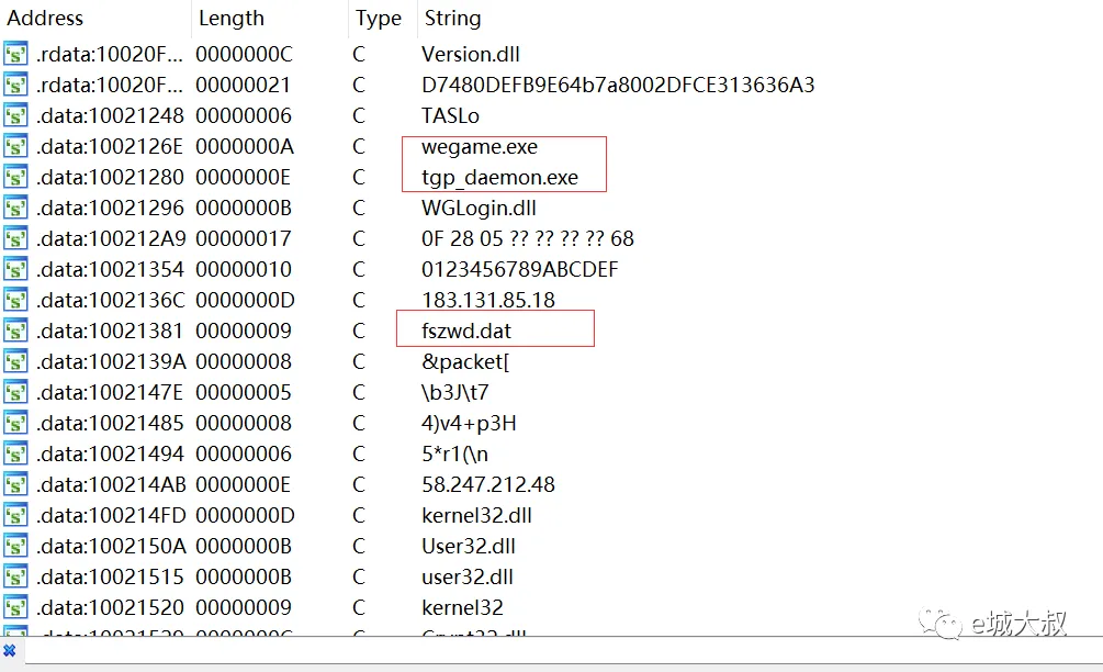 病毒文件用IDA分析,里面有wegame.exe和tgp_daemon.exe的