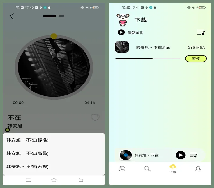 重点给大家看看下载功能,最高能直接下载到无损,而且下载速度非常能打。