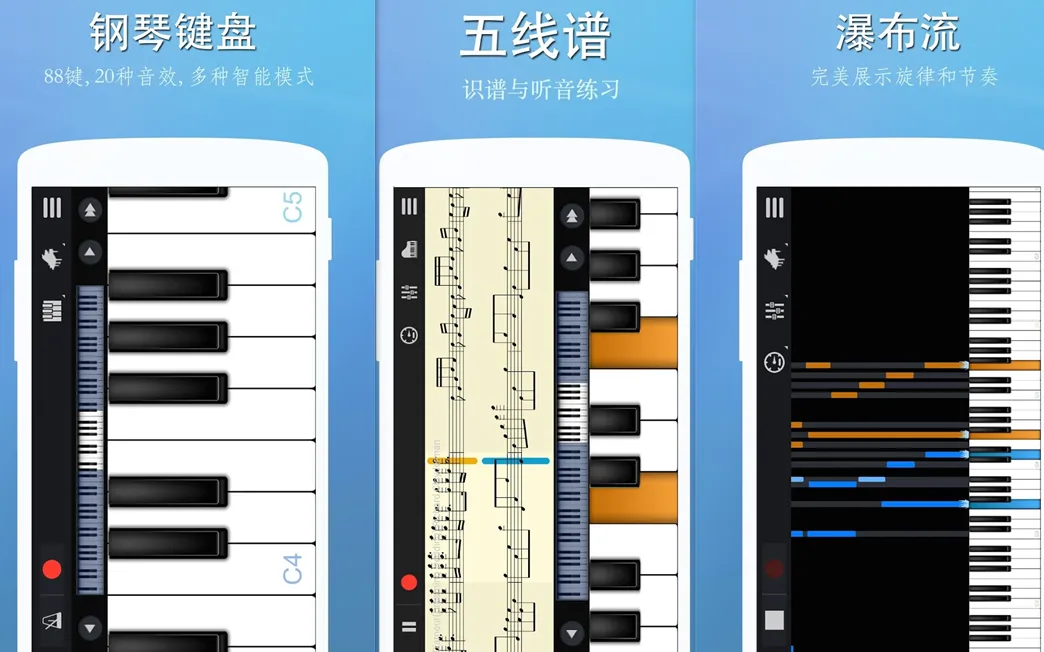 完美钢琴是为你的安卓设备设计的智能钢琴模拟器,内置真实的钢琴音色,你可以通过这个应用程序,准确地学习钢琴,寓教于乐!