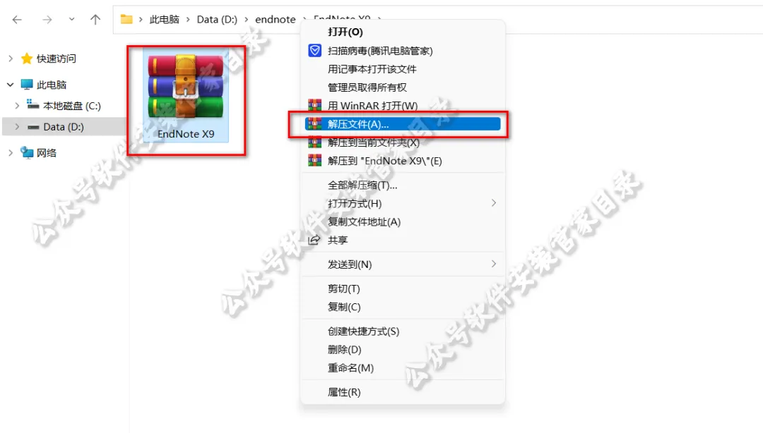 1.鼠标右键解压到”Endnote X9″