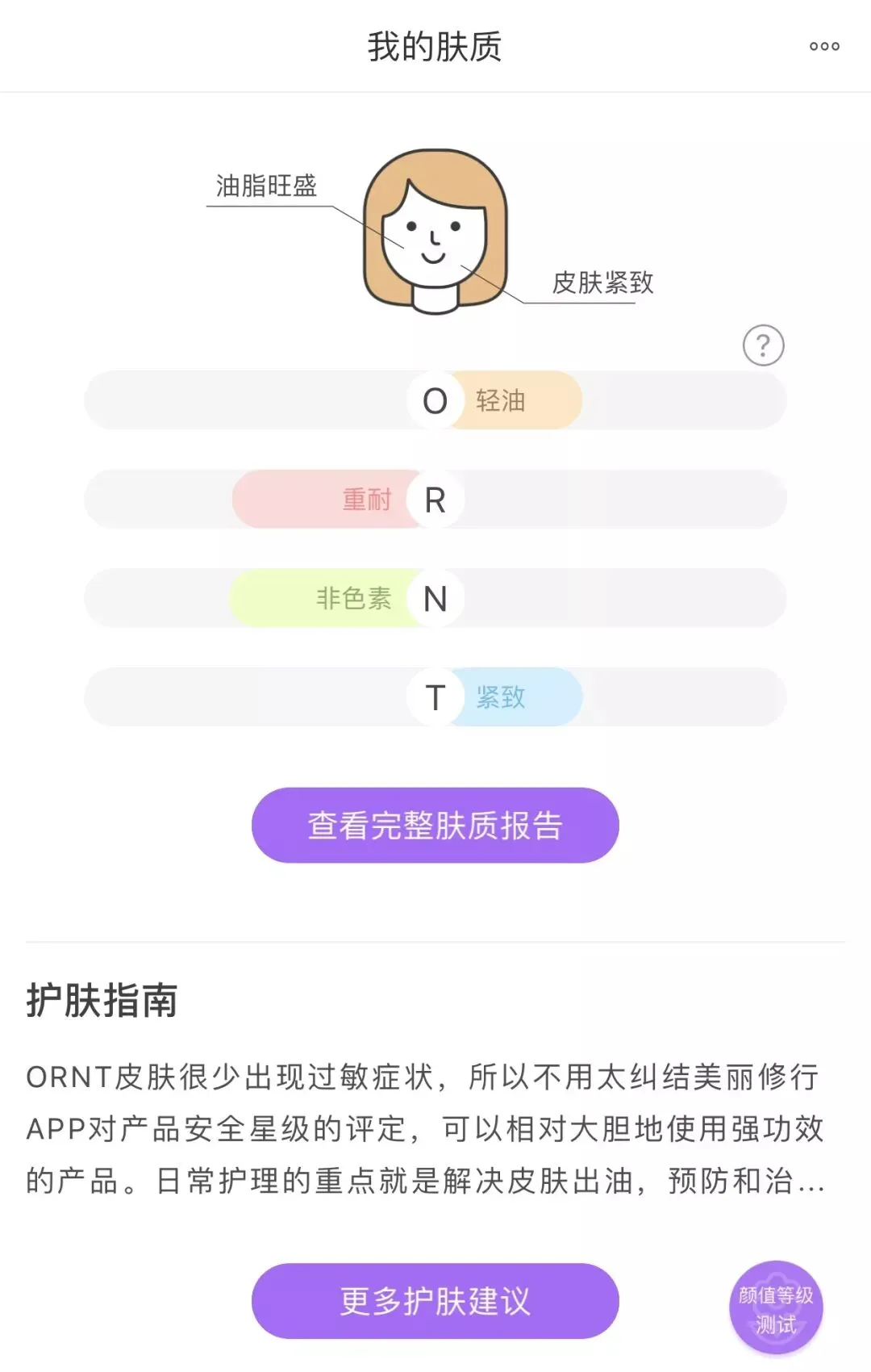 在美丽修行里也可以测自己的肤质,会给出相应的报告和护肤指南,辅助你找到最适合自己的护肤品。