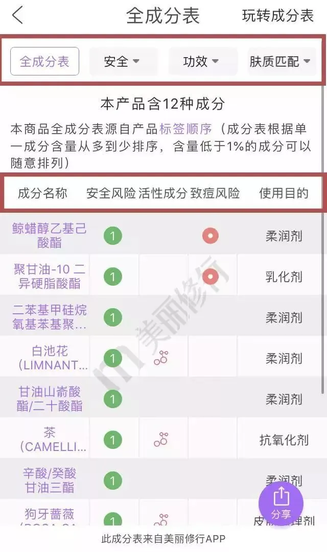 美丽修行是一个同步药监局备案数据,并提供化妆品星级及其成分查询的平台,还能精准匹配十几种肤质的app。科学、精准的护肤的第一步是了解自己的肤质,第二步就是学会看成分表,有了它就不会在买护肤品时乱跟风。