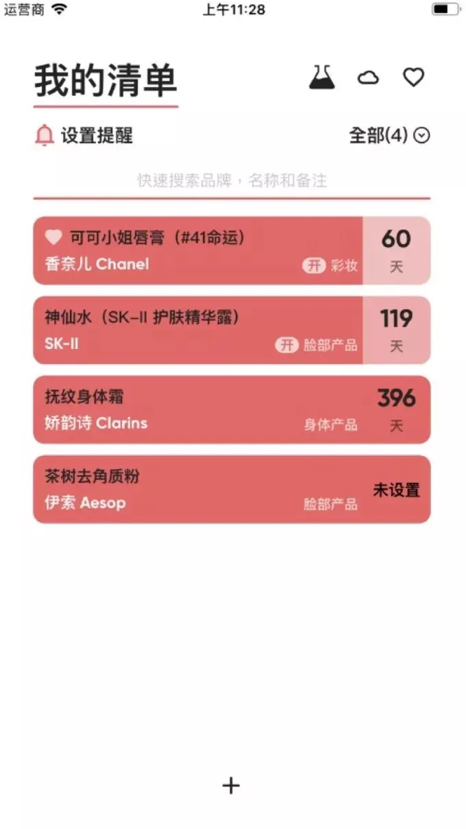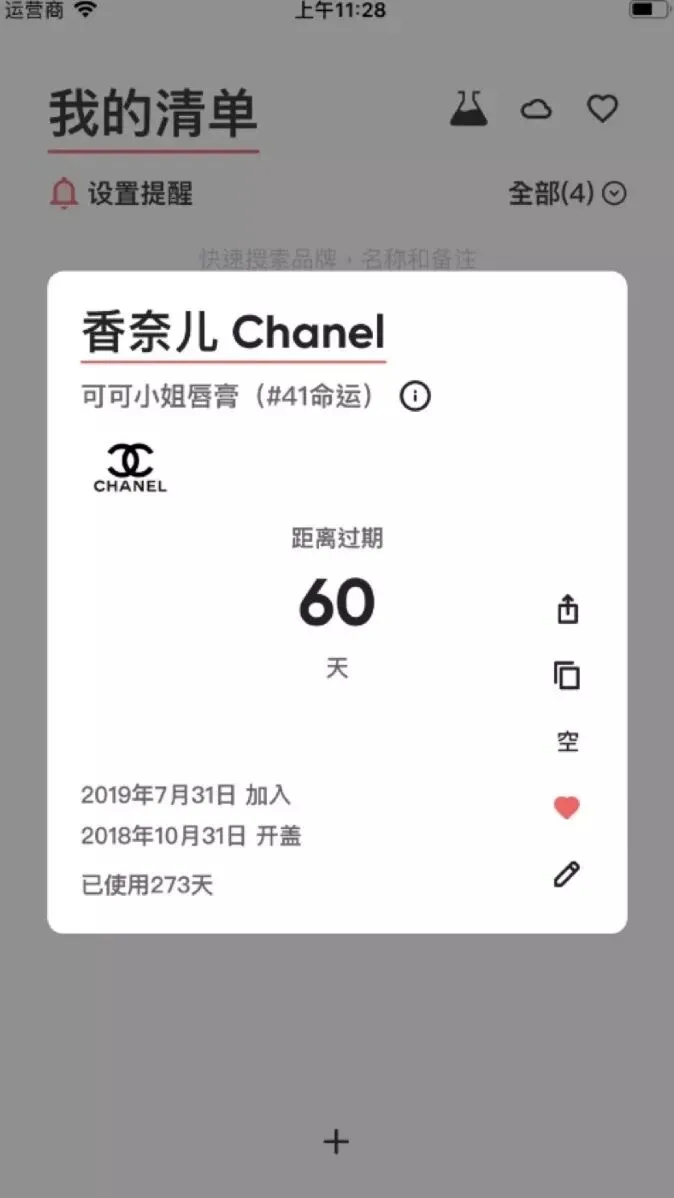 你可以建立属于自己的清单,输入批号和开盖日期或保质期,它会自动帮你计算还有多少天过期,让即将到期的产品一目了然。
