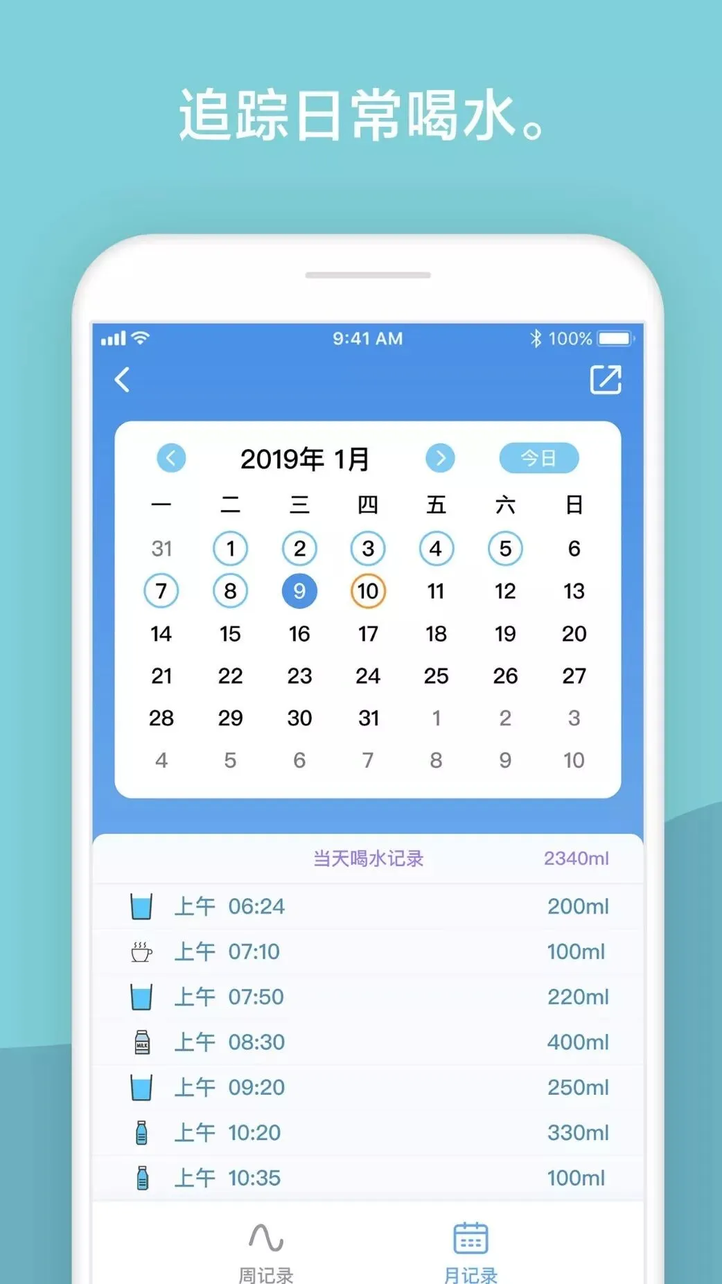 对于不爱喝水的人来说这个app就太实用了。录入自己的体重和性别,app会计算你每天需要多少饮水量,并且定时提醒你喝水,保证你每天摄入足够的水分。