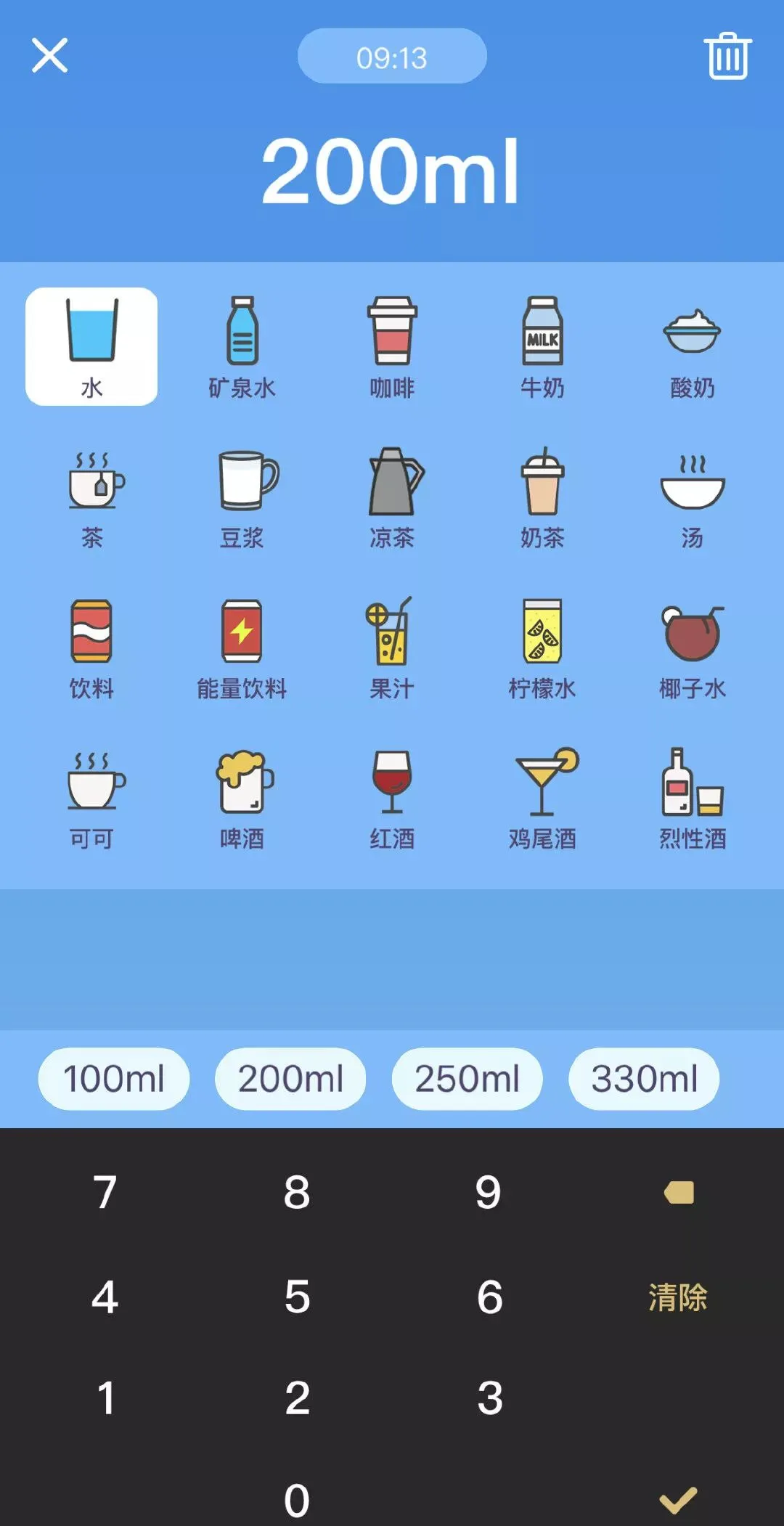 你可以记录自己一天喝了多少水,还有五花八门的类别供你选择,豆浆红酒奶茶都有,不过还是喝凉白开最健康哦~