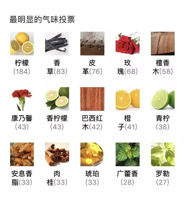 “最明显的气味投票”和“一句话香评”这两个部分可以让人很快联想出这款香水的气味和氛围。