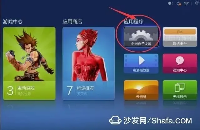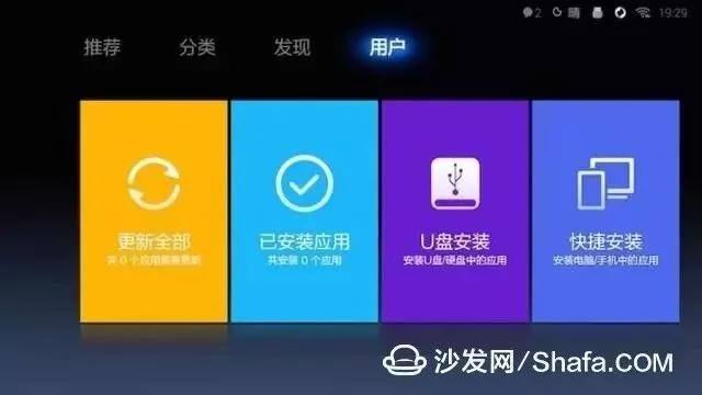 1. 下载沙发管家应用市场(www.shafa.com)附件放到准备好的U盘里,然后插入小米盒子/电视上。