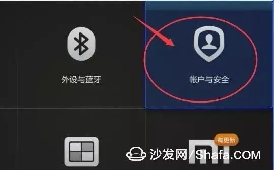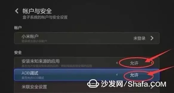 2. 打开小米盒子/电视,进入小米设置界面,找到账户与安全。